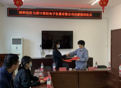 西市區(qū)五臺子街道辦事處相和社區(qū)與營口世紀(jì)電子儀器有限公司舉行“共建簽約儀式”